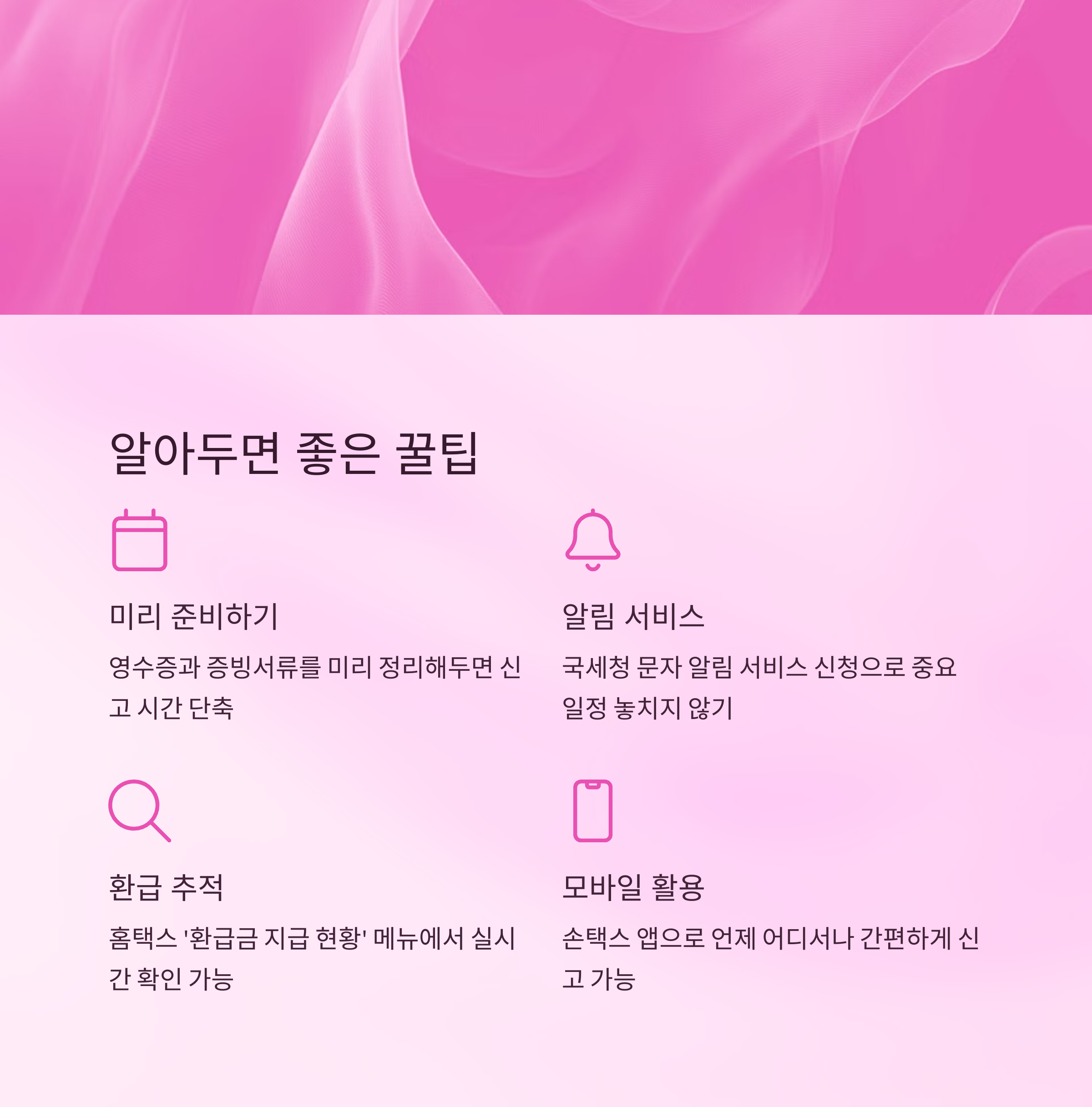 종합소득세 환급은 단순한 돈 돌려받기가 아닌, 납세자가 자신의 권리를 적극적으로 행사하는 과정입니다. 신청 대상 여부를 확인하고, 꼼꼼한 자료 준비와 정확한 신청 절차를 따르면 누구나 쉽게 환급을 받을 수 있습니다.