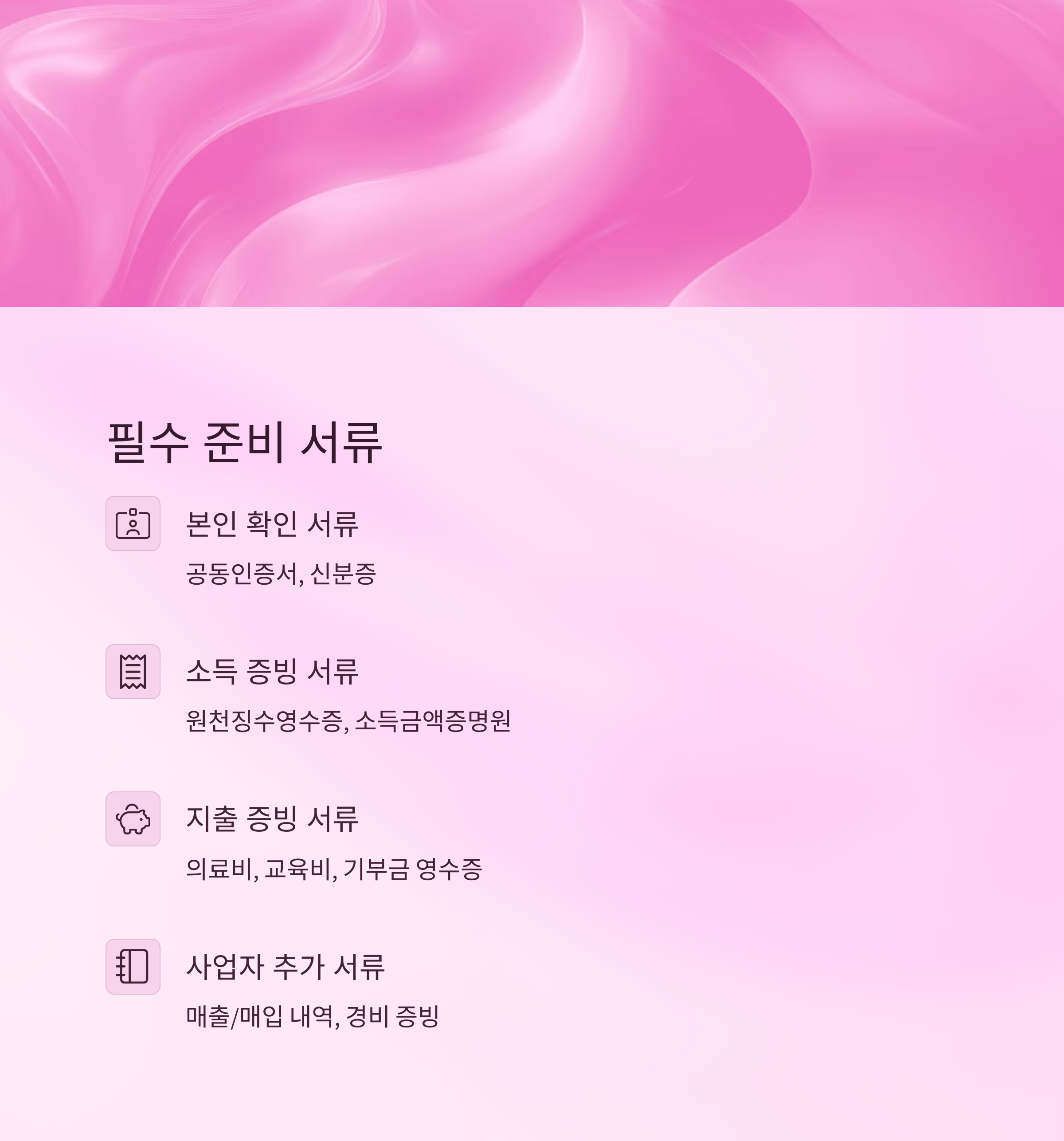 더불어 경비처리와 공제 항목을 꼼꼼히 챙긴다면 생각보다 훨씬 큰 환급액을 받을 수 있으며, 이는 연간 재무계획에도 큰 도움이 됩니다. 이번 기회에 종합소득세 환급을 제대로 챙겨 보세요.