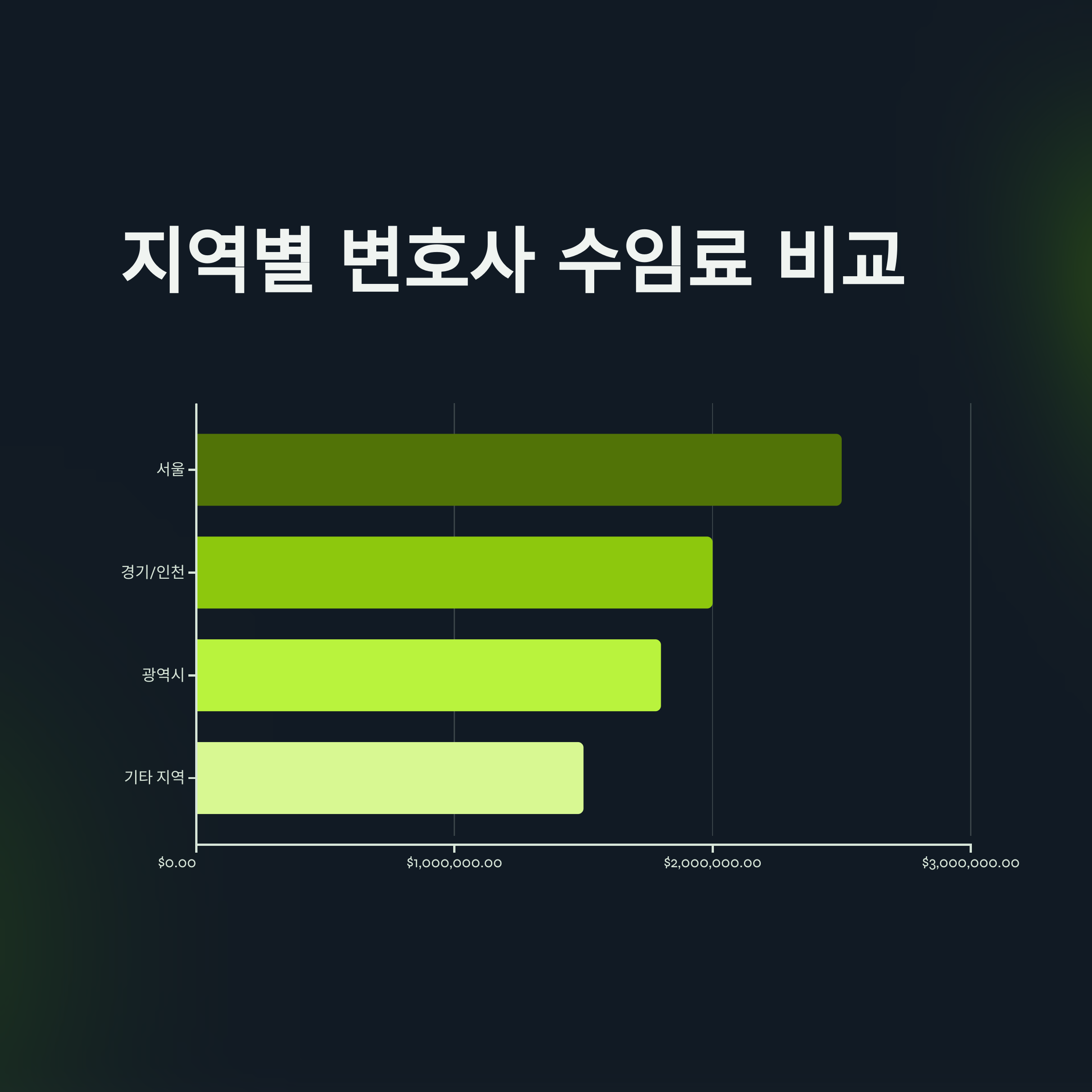 변호사 수임료는 지역별, 사무실 규모별로 차이가 큽니다.
