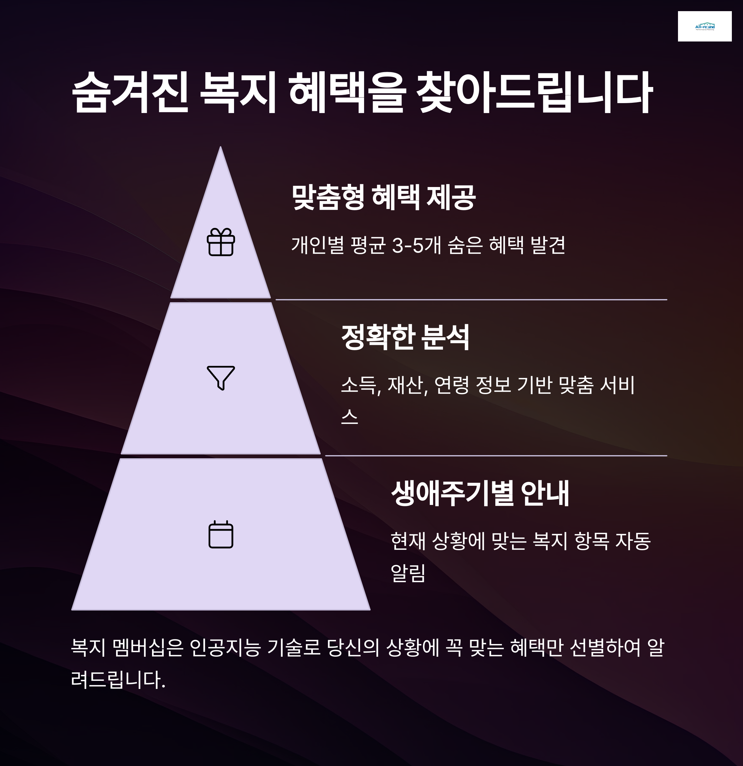 - 소득, 재산, 연령 정보를 바탕으로 내게 꼭 맞는 혜택만 선별하여 제공