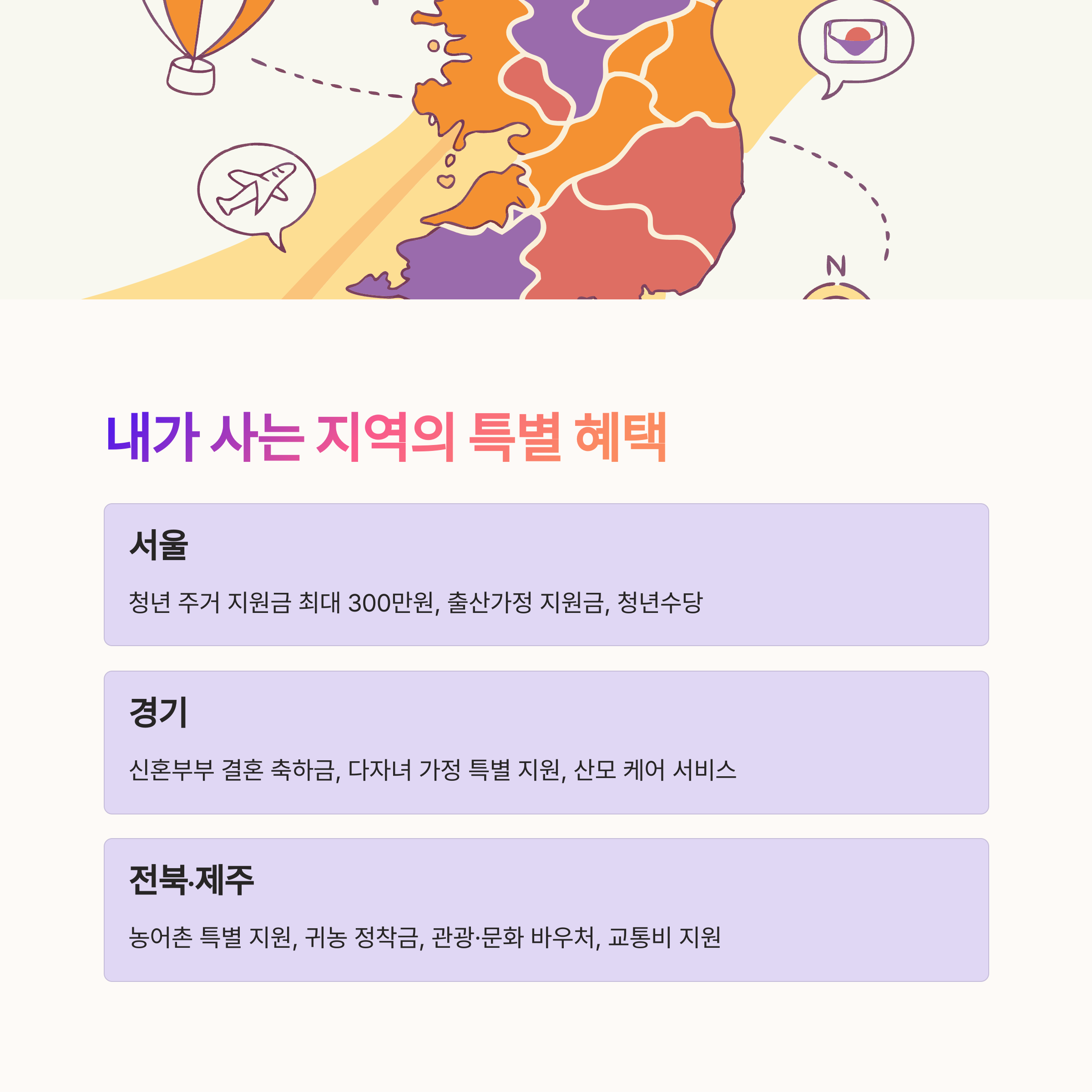 - 서울·경기·전북·제주 등 각 지자체별 추가 지원금 및 수당 혜택까지 자동 연계